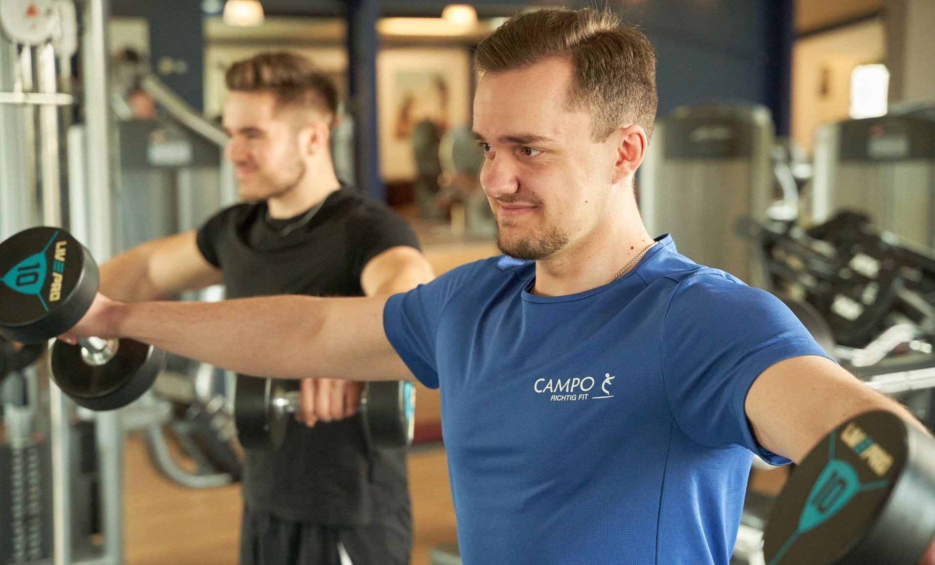 Probetraining vereinbarenCAMPO SPORTS ist nicht einfach ein Fitnessstudio – als Fitnessclub legen wir Wert auf eine angenehme Trainingsatmosphäre, denn wir sind keine Kette! Das bedeutet, dass du in einer familiären Atmosphäre trainieren kannst, ohne lange auf Geräte warten zu müssen. Unsere qualifizierten Trainer stehen zur Verfügung, z.B. um bei Fragen oder Wünschen zu deinem persönlichen Trainingsplan zu helfen!
